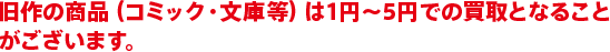 ※コミック・DVD等のセット、おまとめ査定商品は、冊数・点数に関わらず、1セットで1点となります。
