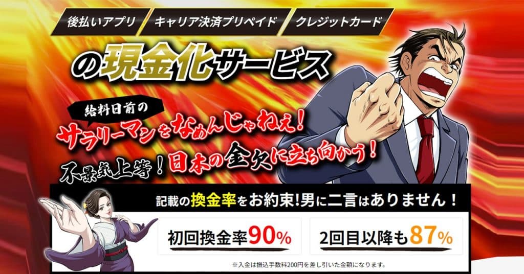 - 初めての利用なら90%の換金率で最短10分で振込対応