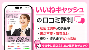いいねキャッシュは、初回換金率88%の後払いアプリやキャリア決済に特化した現金化業者です。