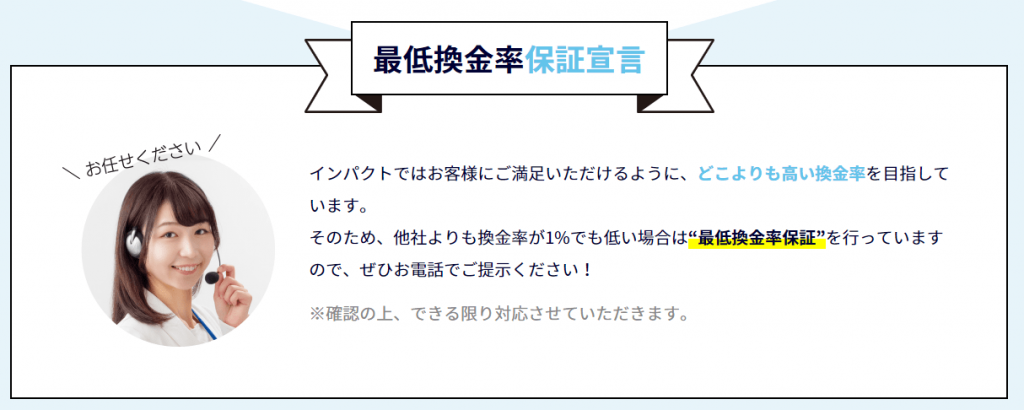 インパクトは「最低換金率保証」という制度を取り入れています。