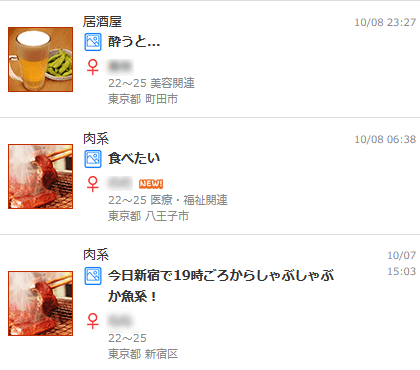 即会いを狙うなら、「一緒にごはん」掲示板を活用してみましょう。