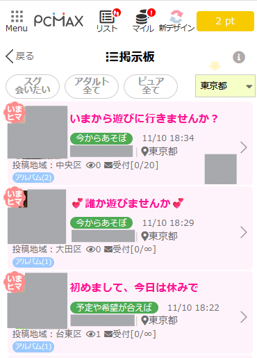 掲示板に投稿している女性はフットワークが軽く、予定を合わせてその日に会えるケースも多く見られます。