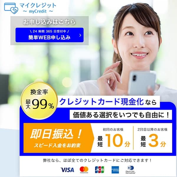 マイクレジットは高い換金率とカード事故0件の実績があるクレジットカード現金化の優良店です。