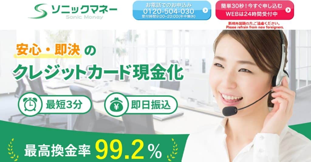 ソニックマネー99.2%91%3分09:00~20:00不明